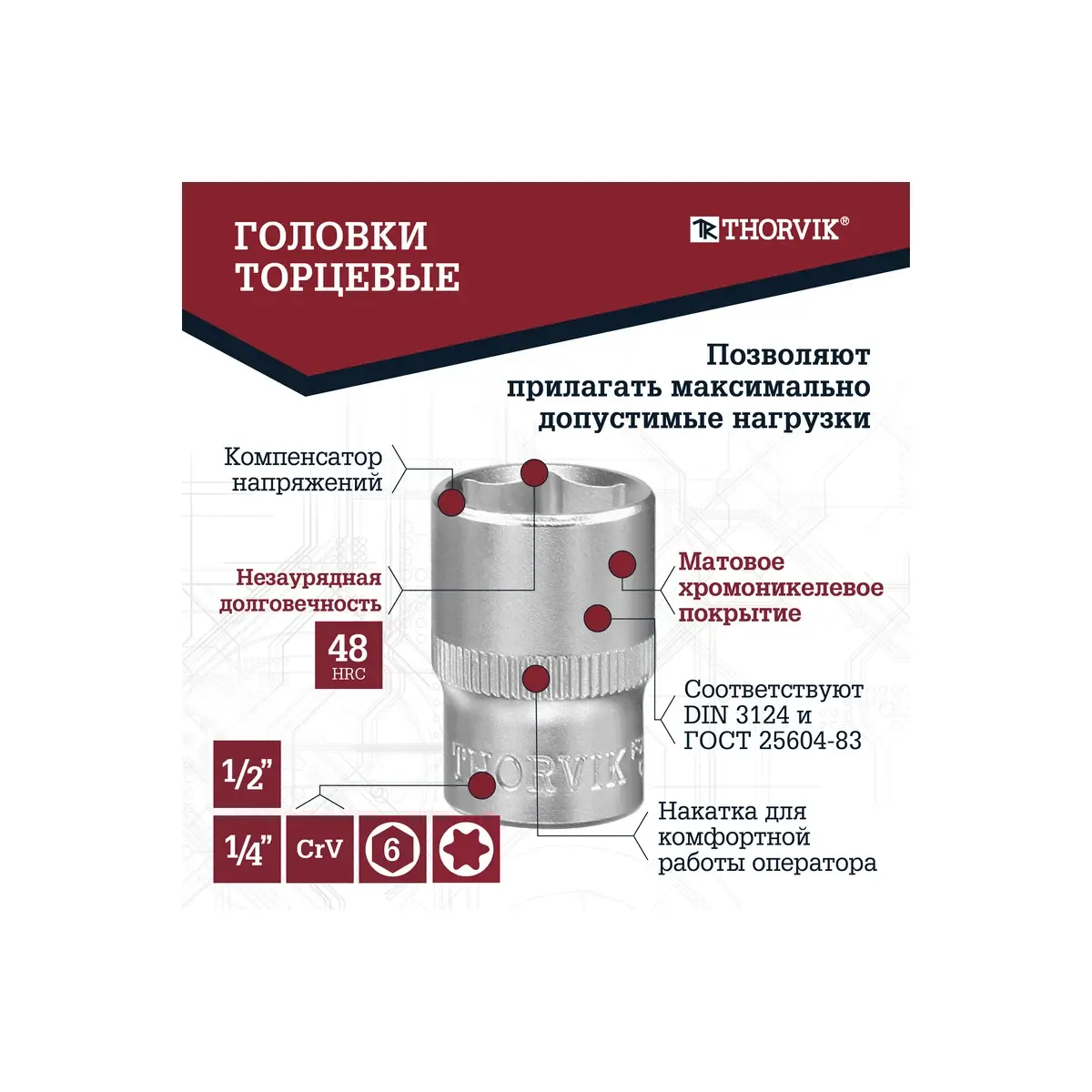 - ГОЛОВКИ ТОРЦЕВЫЕ 1/2"DR, 14 шт.: 13, 14, 15, 16, 17, 18, 19, 20, 21, 22, 24, 27, 30, 32 мм