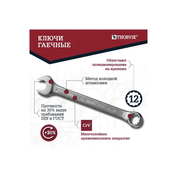 - КЛЮЧИ КОМБИНИРОВАННЫЕ, 12 шт.: 8, 10, 12, 13, 14, 15, 16, 17, 18, 19, 22, 24 мм