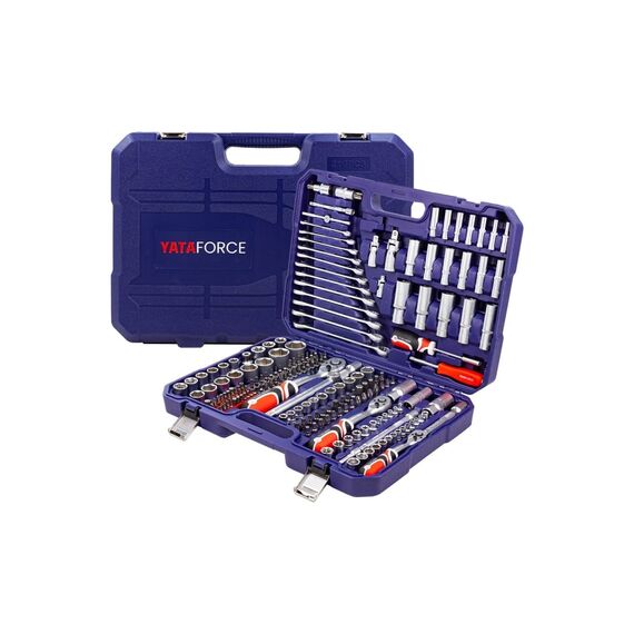 Набор из 216 предметов от бренда YATAFORCE отличается беспрецедентным качеством, надежностью и практически неограниченным сроком службы. Посадочный квадрат: 1/4", 3/8", 1/2". Тип головок: 6-гранные, Е-профиль, короткие, глубокие.