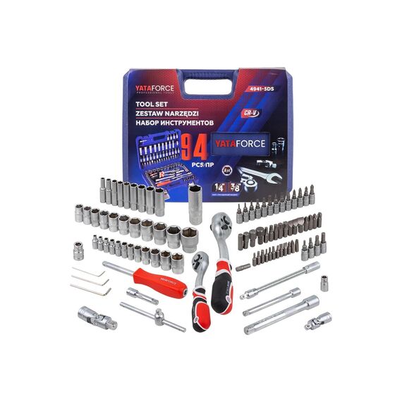 Набор инструментов от бренда YATAFORCE из 94 предметов в кейсе - предназначен для работы как с обычным крепежом так и с гайками или болтами, у которых повреждена или сорвана наружная поверхность, так называемая грань.