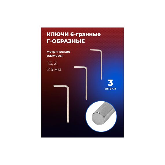 - Ключи Г-образные шестигранные: 1.5, 2, 2.5 мм
