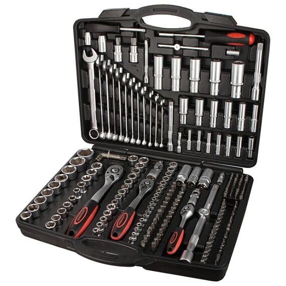 трещотка 1/2": 72 зуба; удлинитель 1/2": 125, 250 мм; трещотка 3/8": 72 зуба; удлинитель 3/8": 125 мм; трещотка 1/4": 72 зуба; удлинитель 1/4": 50, 100 мм; вороток т-образный 1/4": 115 мм