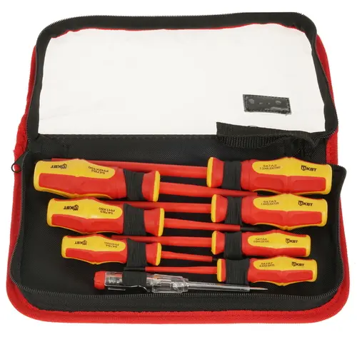 Набор отверток – удобное приспособление для работы под напряжением 1000 В. Модель состоит из 8 предметов, которые поставляются в удобной сумке с замком. Изделие подходит для профессионального или бытового использования. Хромованадиевая сталь обеспечивает высокую прочность и долговечность инструмента.