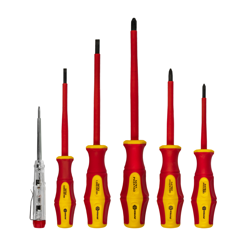 Набор отверток диэлектрических состоит из ручного инструмента, предназначенного для завинчивания и отвинчивания резьбовых соединений. Набор подходит как для винтов с крестовой шляпкой, так и с плоской. Диэлектрическое покрытие дает возможность работать под напряжением. Эргономичная форма ручек способствует удобному захвату и предотвращает соскальзывание при работе.
