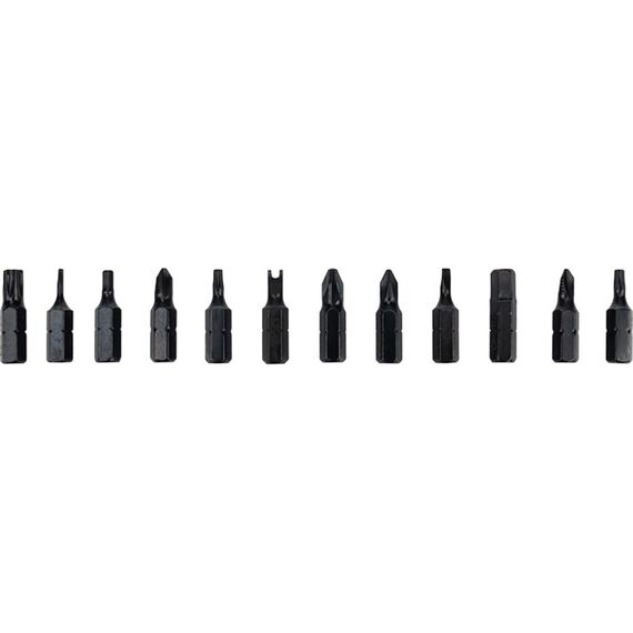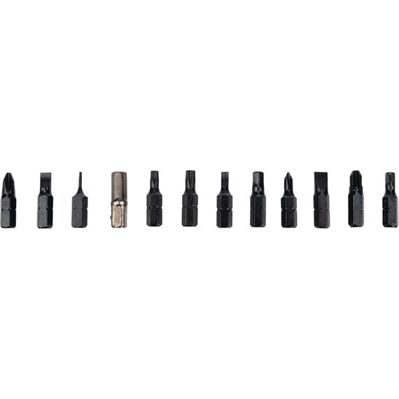 Биты набора изготовлены из хромованадиевой стали и обладают высокой твердостью, что обеспечивает высокую стойкость к износу.