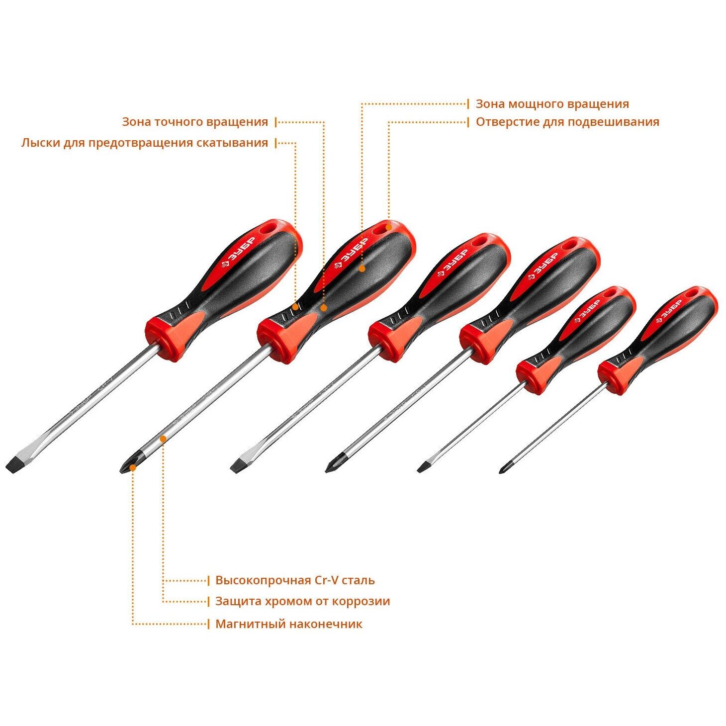 Набор отверток слесарных Зубр Мастер (25066) 6 предметов