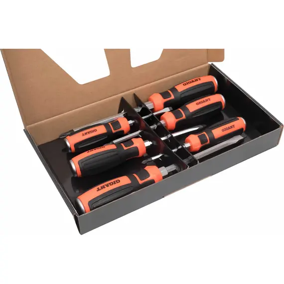 Набор ударных отверток Gigant GBSIS-6 представлен в оптимальной комплектации и включает в себя популярные типоразмеры. Применяется для обслуживания резьбовых соединений.
