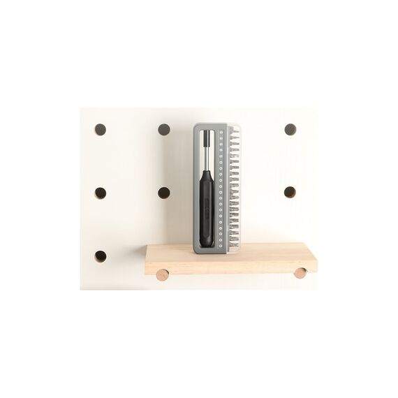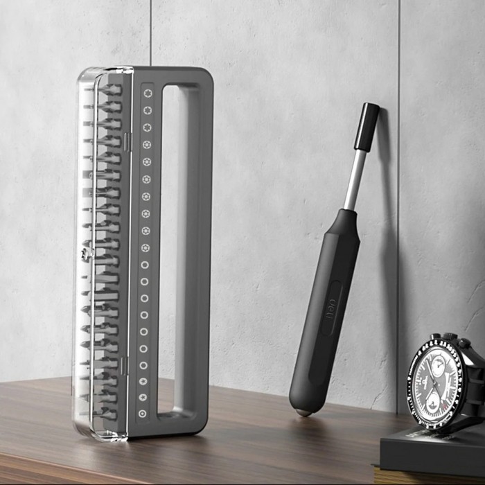 Он включает в себя саму отвертку и целых 40 бит различного типа к ней, что обеспечивает широкий выбор инструментов для разного типа винтов.