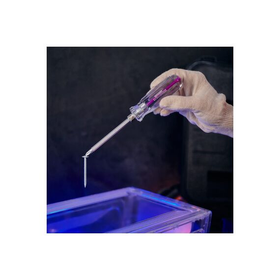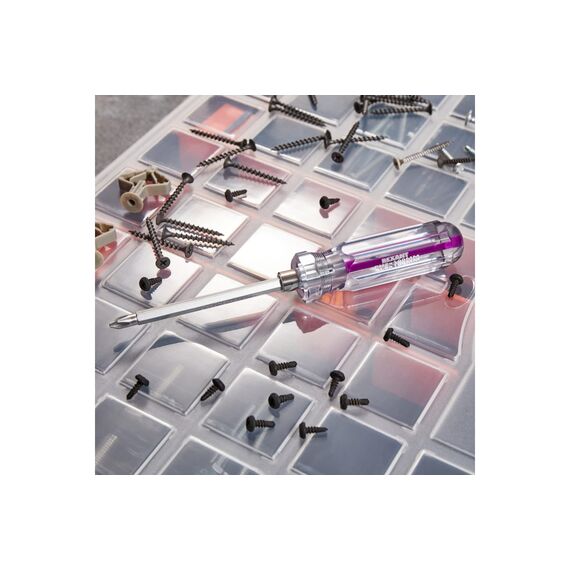 1.Стержень комбинированной отвертки REXANT 12-4742 из высококачественной хромованадиевой стали с намагниченным наконечником.