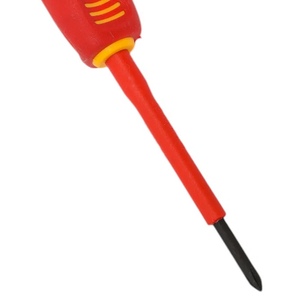 Крестовая отвертка NEO PH0x60 мм 1000 В CrMo 04-071 оснащена прочным и жестким стержнем из хроммолибдена. Инструмент полностью изолирован, за исключением наконечника, для безопасной работы с электросетях.