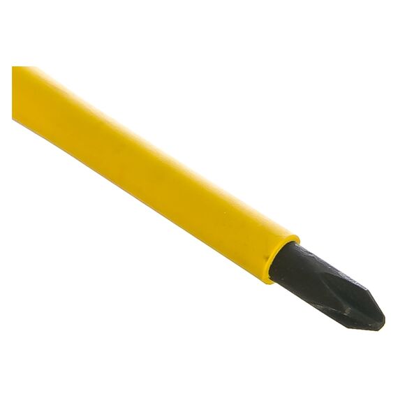 Крестовая отвертка NEO PH2x100 мм 1000 В CrMo 04-073 оснащена прочным и жестким стержнем из хроммолибдена. Инструмент полностью изолирован, за исключением наконечника, для безопасной работы с электросетях.