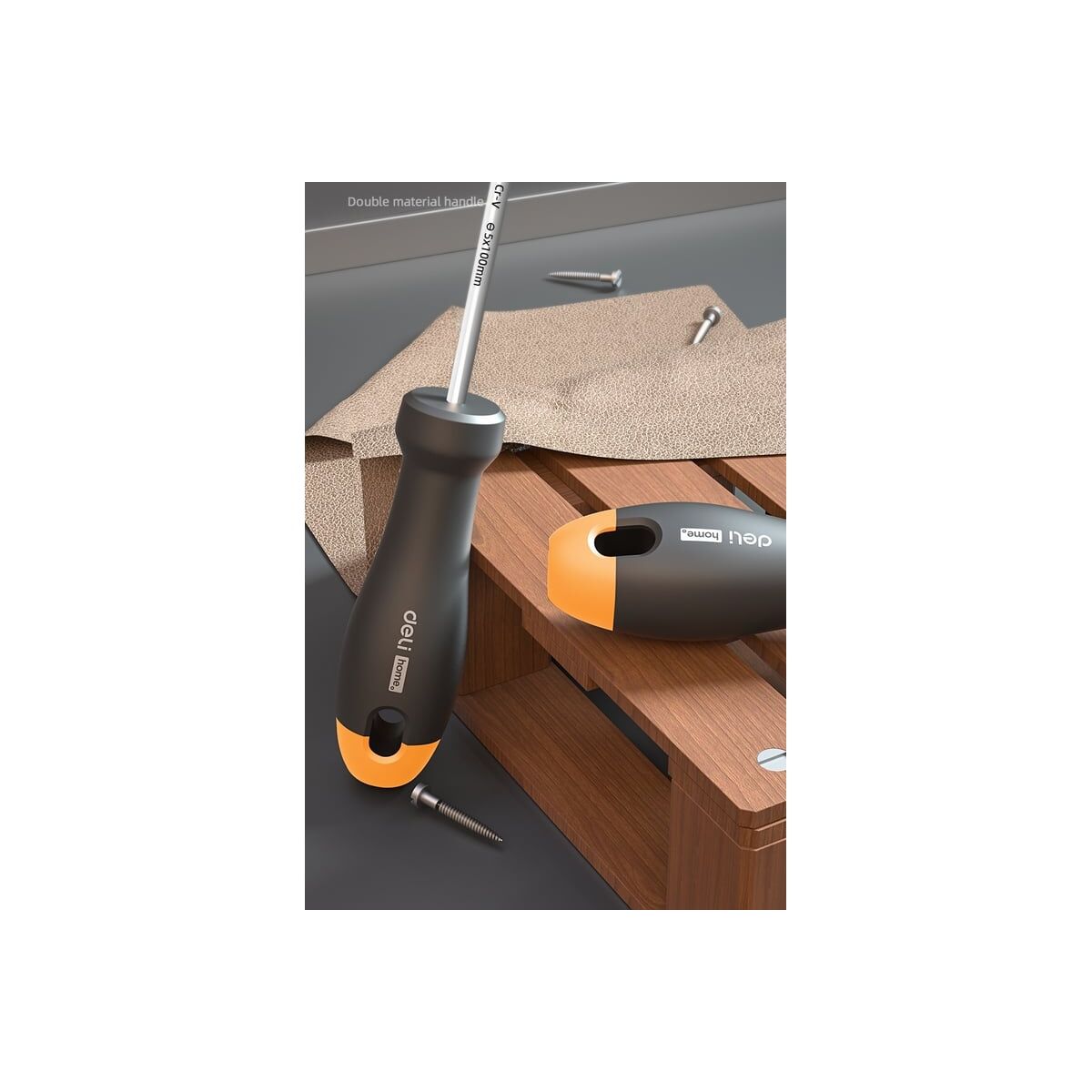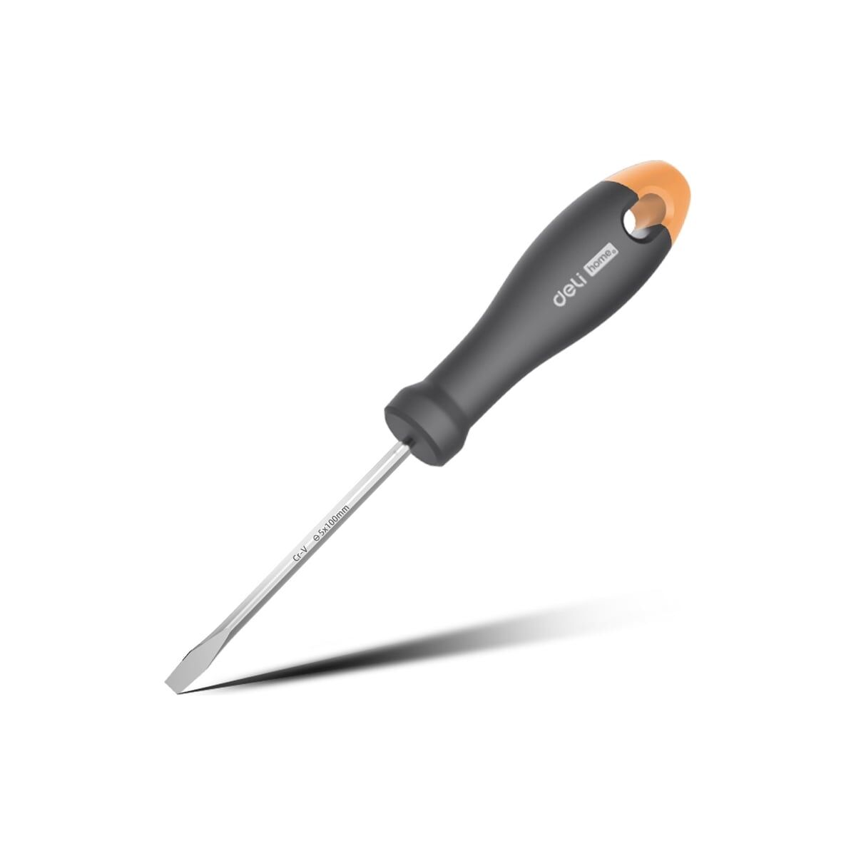 Шлицевая отвёртка DELI «Home SeriesGray» HT1105C SL5x100мм (Cr-V, Soft Touch рукоятка. подарочная упаковка, эксклюзивный дизайн) 104604 используется для работ с резьбовыми соединениями в процессе ремонта или монтажа.