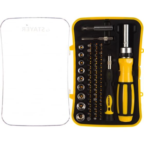 Многофункциональность набора насадок с реверсивной отверткой 65 предметов STAYER MASTER 25310-H65.