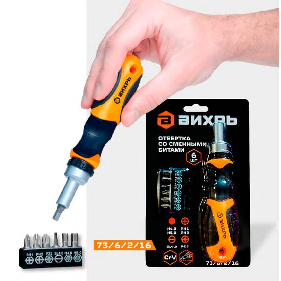 Отвертка Вихрь 73/6/2/16 со сменными битами 6 шт