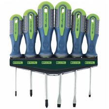 Набор отверток включает в себя 6 предметов из стали CrV с трехкомпонентными рукоятками, которые будут полезны мастерам при осуществлении несложных ремонтных и монтажных работ. С их помощью можно производить монтаж/демонтаж резьбового крепежа с профилем SL и PH. Длина стержней отверток...