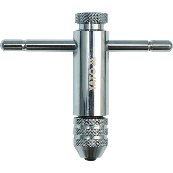 Вороток для метчиков M5-M12 с трещоткой YATO YT-2990 упрощает нарезание резьбы за счет использования трещоточного механизма. Удобная Т-образная рукоятка значительно снижает необходимое для работы усилие. Инструмент успешно применяется метчиками до 12 мм.
