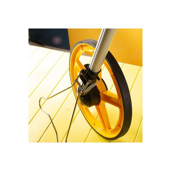 Измерительно колесо оснащено удобной подножкой для установки колеса в вертикальное положение.