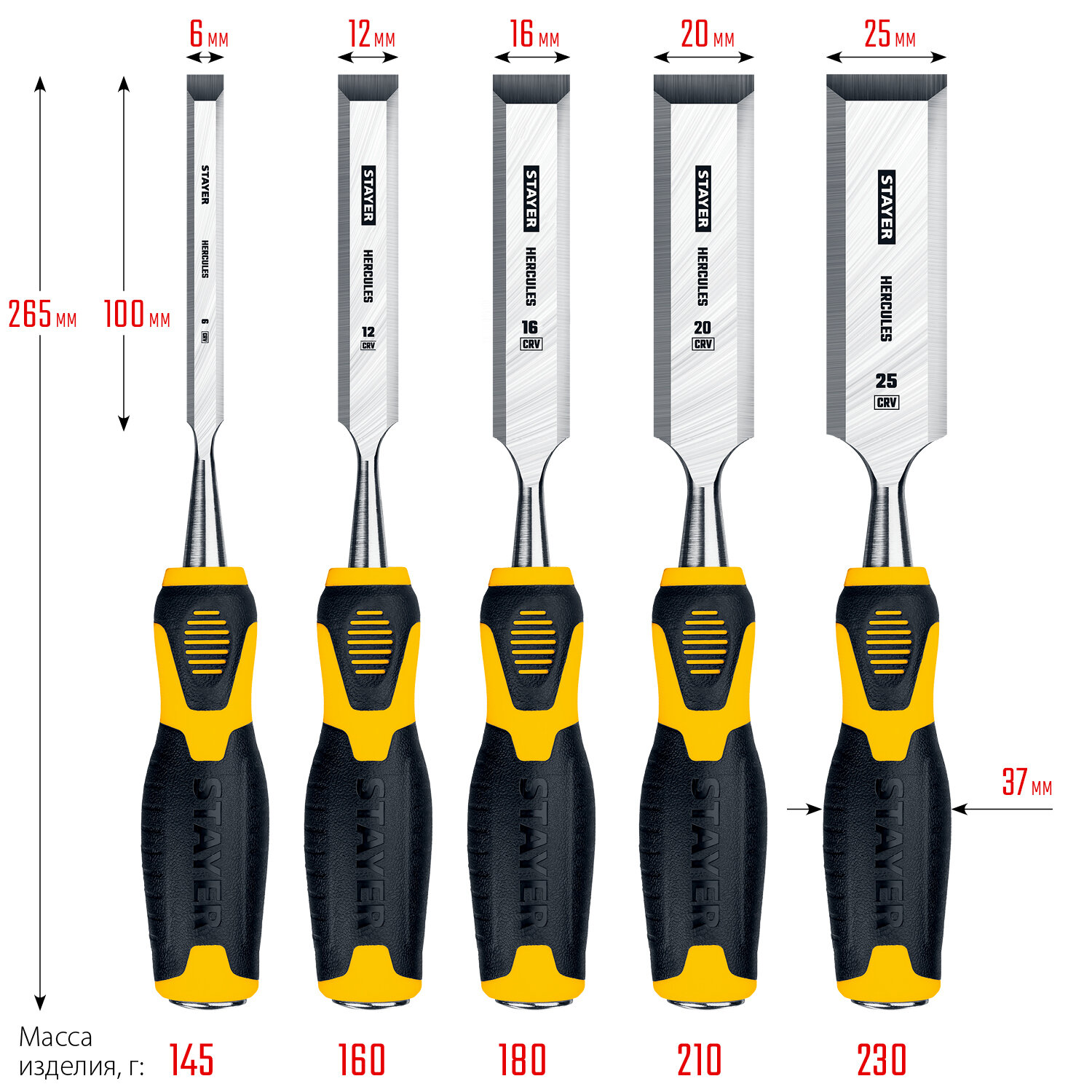 Стамески: 6,12, 16, 20, 25 мм;