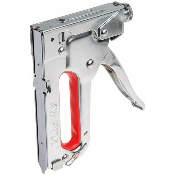 Строительный степлер STARTUL ST4506 используется для быстрого закрепления проволочной сетки, кабеля, обивки мебели и других видов работ в мастерских, дома и в саду. Пистолет оснащен механизмом для регулировки силы удара. Инструмент используется с двумя типами скоб (прямоугольными тип 53 4-14 мм, кабельными тип 28 10-12 мм), а также гвоздями 10-14 мм и штифтами 14 мм. Степлер выполнен из качественной и прочной стали.