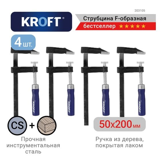 Набор струбцин KROFT 203105 F-образных 4 шт