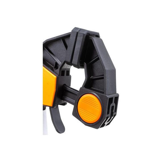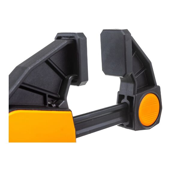 Пистолетная быстрозажимная струбцина предназначена для профессиональной эксплуатации. Ширина зажима составляет 450 мм.