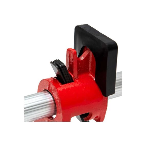 Благодаря прочному винту с качественной резьбой можно прикладывать больше усилий. Наличие мягких накладок на губках снижает вероятность повреждения заготовок.