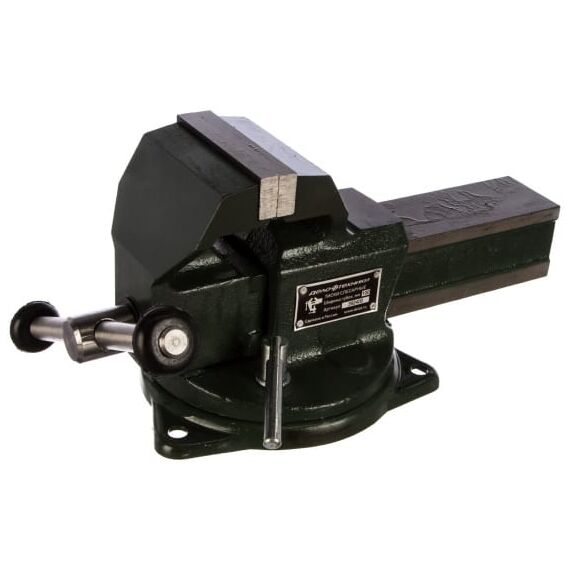Слесарные поворотные тиски Дело Техники ТСС-100 392400 оснащаются поворачивающимся на 120 градусов основанием. Рабочие губки имеют твердость 45-53 HRC (изготавливаются из стали 50Х). Материал корпуса тисков - чугун ВЧ 50. Устройство гарантирует усилие зажима 2000 кгс. Высота рабочего пространства равняется 70 мм.