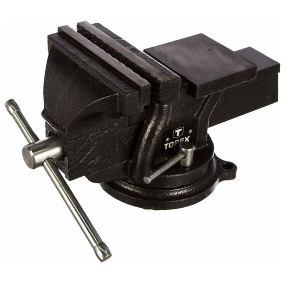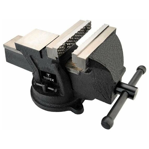 Тиски слесарные поворотные с наковальней TOPEX 07A212 используются для зажатия различных заготовок или предметов для дальнейшей обработки ручным или механическим путем. Благодаря износостойкому материалу инструмент выдерживает повышенные нагрузки. Приспособление оснащено механизмом подвижной губки. Тиски имеют поворотную основу, которая обеспечивает обработку с разных сторон.