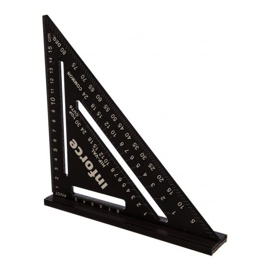 Кровельный угольник Inforce 175 мм 06-11-66 удобен для откладывания прямых линий, параллельных или перпендикулярных основным направлениям детали.