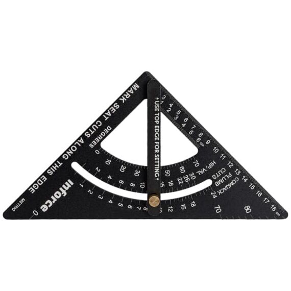Кровельный угольник Inforce с угломером, 190 мм 06-11-76 используется для проведения разметочных работ при строительстве, монтаже кровель и в бытовой сфере.
