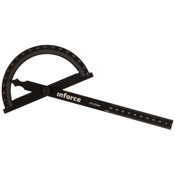 Транспортир с линейкой 200 мм Inforce 06-11-64 удобен для откладывания прямых линий в любом направлении по плоскости детали.