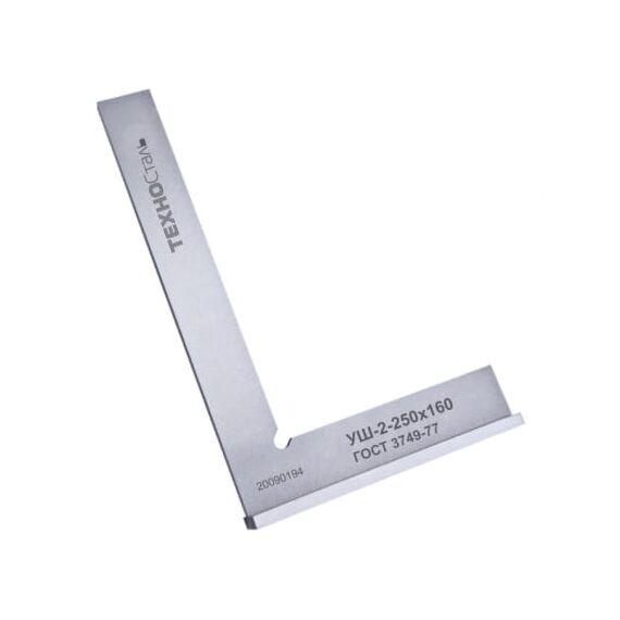 Угольник ТехноСталь УШ-2-250 250x160 ГОСТ 3749-77 F147007 предназначен для проверки прямых углов и применяется для контроля перпендикулярного расположения деталей с высокой точностью. Имеет заостренные измерительные поверхности и плоские опорные поверхности. Угольник изготовлен из прочной инструментальной стали.