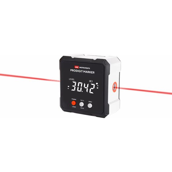 Электронный уровень с лазерным маркером ADA ProDigit MARKER А00671 позволяет быстро и точно определить угол отклонения поверхности от горизонта или вертикали.