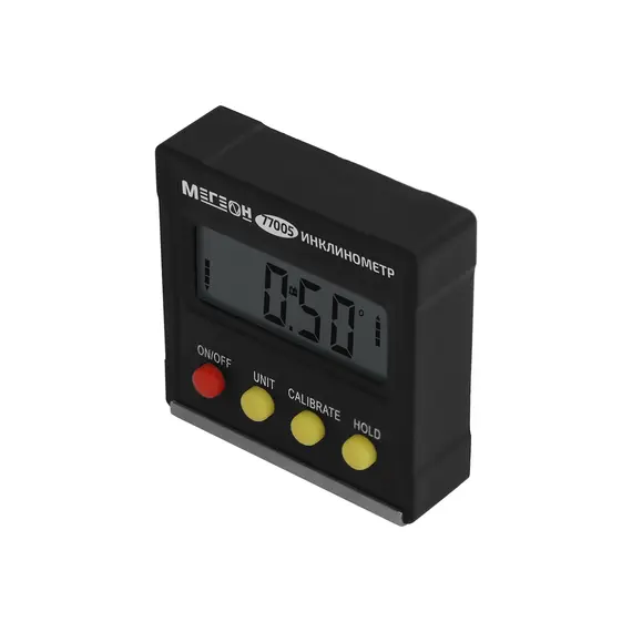 МЕГЕОН 77005 - новинка в модельном ряду цифровых уровней. Прибор предназначен для абсолютного измерения угла наклона различных изделий. С его помощью можно осуществлять установку оборудования "в горизонт" и его юстировку. Эргономичный пластиковый корпус и компактные размеры максимально упрощают эксплуатацию и использование в труднодоступных местах, а мощное магнитное основание обеспечивает надёжное удержание угломера на металлических поверхностях. Функция ноля позволяет проводить относительные вычисления с низкой погрешность. Высокое качество изготовления удовлетворит требования самого искушённого потребителя. Простота применения не требует от пользователя специальных навыков, что даёт возможность применять инклинометр в быту и на производстве. Измеритель станет незаменимым помощником у профессионалов и любителей.