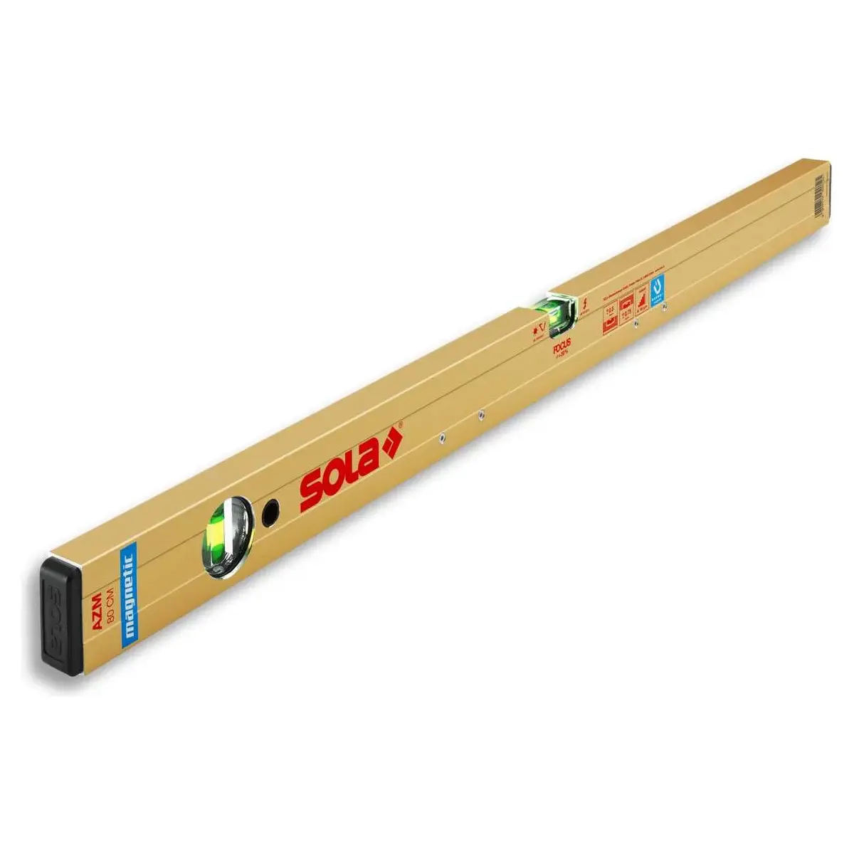 Магнитный уровень SOLA AZM 40 NEW, L=40 см, 2 глазка 01820501 оборудован мощными неодимовыми магнитами. 2 магнита встроены с боковой стороны и закрыты заглушками. Измерительная поверхность при этом остается абсолютно гладкой, и с нее легко удаляется мусор и металлические опилки.