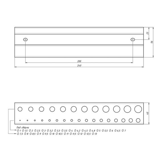 - Изделие имеет 29 посадочных мест для сверл диаметром от 1 мм до 13 мм