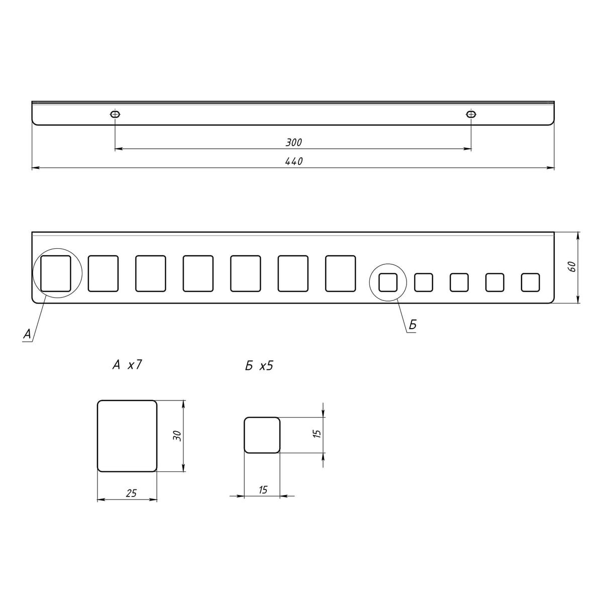 Держатель имеет продуманную конструкцию, предусматривающую место для хранения двенадцати предметов, которые можно расположить в специальные отверстия. Семь отверстий размером 25х30 мм для больших инструментов и пять отверстий размером 15х15 мм для ручного инструмента меньшего размера.