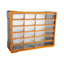 Система хранения DEKO Smart box 24 выполнена в форме вертикального кейса с выдвижными ящиками, служит для хранения и транспортировки крепежных изделий. Качественное исполнение гарантирует долгий срок службы ящика. Имеет 24 съемных секций. Система хранения выполнена из пластика. Размеры ячеек...