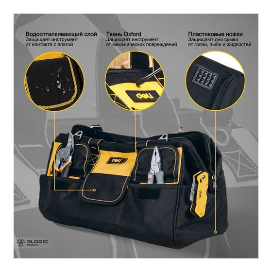 Сумка для инструментов DELI DL430118 430x200x290 мм 14 карманов, водоотталкивающая ткань Oxford, плечевой ремень 98482 используется для хранения и транспортировки инструмента.