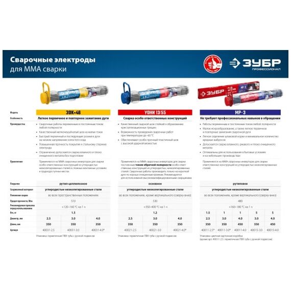 Технические характеристики сварочного электрода ЗУБР 40021-2.5