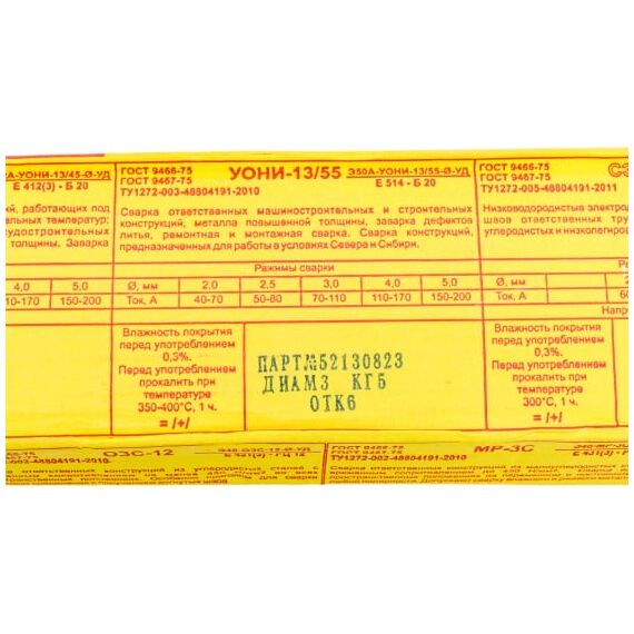 Электроды МОСЗ УОНИ 13/55 3 мм, 5 кг СпецЭлектрод 067910 предназначены для сварки особо ответственных конструкций из углеродистых и низколегированных сталей, когда к металлу швов предъявляют повышенные требования по пластичности и ударной вязкости. Сварка проводится во всех пространственных положениях шва постоянным током обратной полярности. Обеспечивают получение шва с высокой стойкостью к образованию кристаллизационных трещин и с низким содержанием водорода.