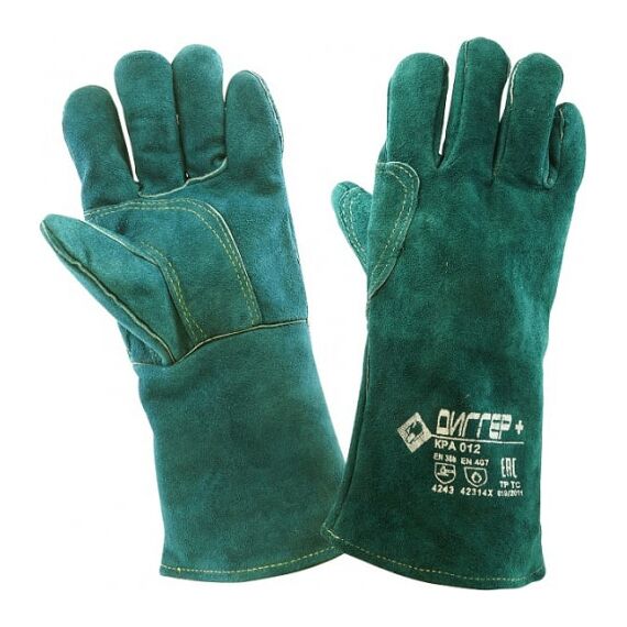 Краги ДИГГЕР плюс кра012 спилковые зеленые с кевларовой нитью размер 10