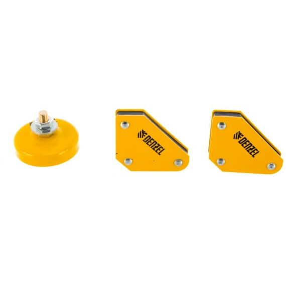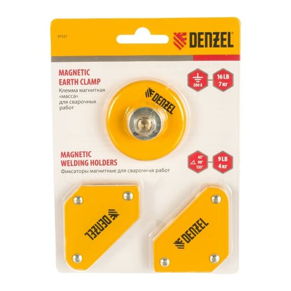 Набор из 2 магнитных фиксаторов и магнитной клеммы «масса» Denzel 97557 предназначен для проведения сварочных работ, пайки и монтажа металлоконструкций. Клемма с максимальным током 200 А обеспечивает электрическое соединение кабеля заземления и обрабатываемой детали, без которого невозможна ручная дуговая сварка. А магнитные уголки фиксируют свариваемые детали весом до 4 кг в нужном положении, благодаря чему мастер может работать в одиночку.