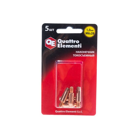 Наконечник токосъемный QUATTRO ELEMENTI 771-244 M6x28 1.0мм, 5шт в блистере, для горелки полуавтомата