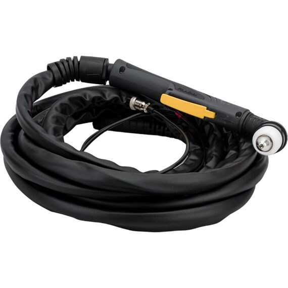 Резак плазменный P-80 6 м, М16x1.5 START ST80-6000 представляет собой надёжный резак для осуществления работ при использовании воздушно-плазменных установок. Плазмотрон с лёгкостью справится с резкой металла до 25 мм, а воздушный тип охлаждения поможет выполнить все запланированные работы без остановок и с высокой степенью продуктивности. Значительная длина шлейфа резака позволяет охватывать большую рабочую зону без дополнительного перемещения оборудования, что существенно облегчает и ускоряет весь рабочий процесс. Управление плазмотроном осуществляется при помощи удобного кнопочного управления.