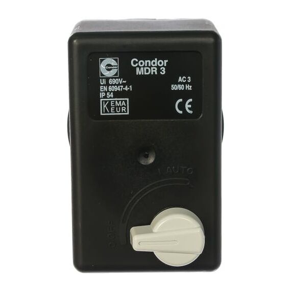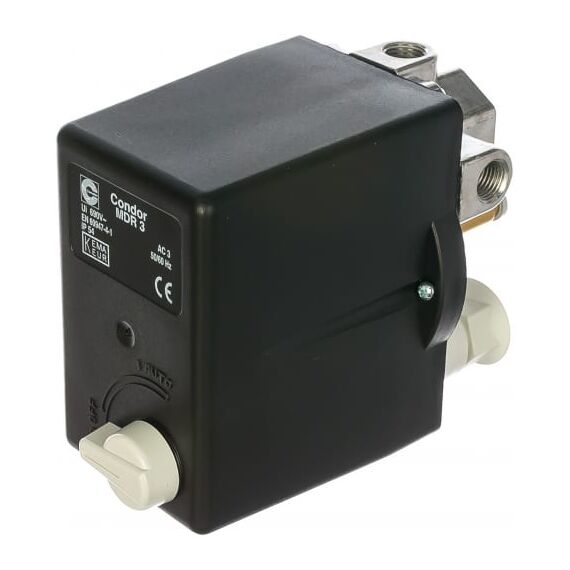 Реле давления MDR_3/11_R3/24_GDA_AAAA_090A110_CHI_LXX CONDOR WERKE 100400289 предназначено для компрессоров. Применяется для контроля уровня подаваемого воздуха. Имеет трехфазное и однофазное подключение. Максимальная мощность электродвигателя – 10 кВт. Максимальное давление отключения – 11 бар. Класс защиты – IP 54. Фланец – 1/2", 4L. Реле давления оснащено разгрузочным клапаном для облегчения пуска компрессора после остановки. Тепловое реле для защиты электродвигателя – 24А.