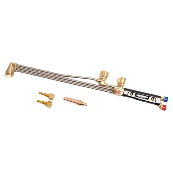 Резак трехтрубный универсальный KRASS-535 2278588 вентильный, внутрисоплового смешения предназначен для ручной газокислородной резки (раскроя) листового и сортового металла из низкоуглеродистых сталей толщиной до 300 мм.