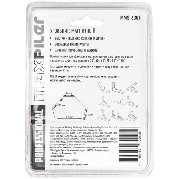 Угольник магнитный Maxpiler MMS-6301 (для фикс. под 30, 45, 60, 75, 90, 135 град., усилие до 11 кг,размер 3")