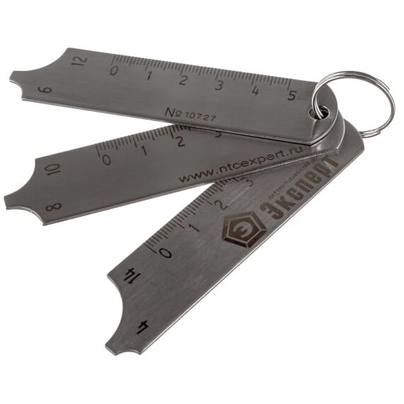 Шаблон сварщика универсальный Gigant GT-098 предназначен для контроля катетов угловых швов. Конструктивно оснастка состоит из трех соединенных пластин с выточками разных диаметров. Контроль с использованием шаблона ведется путем прикладывания пластин до выявления минимального зазора.