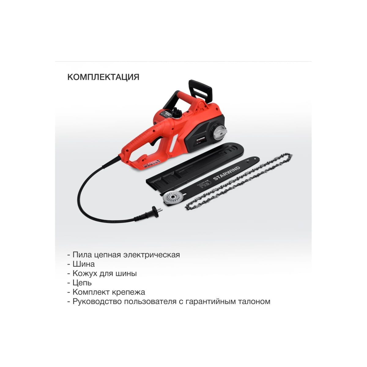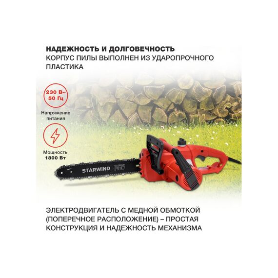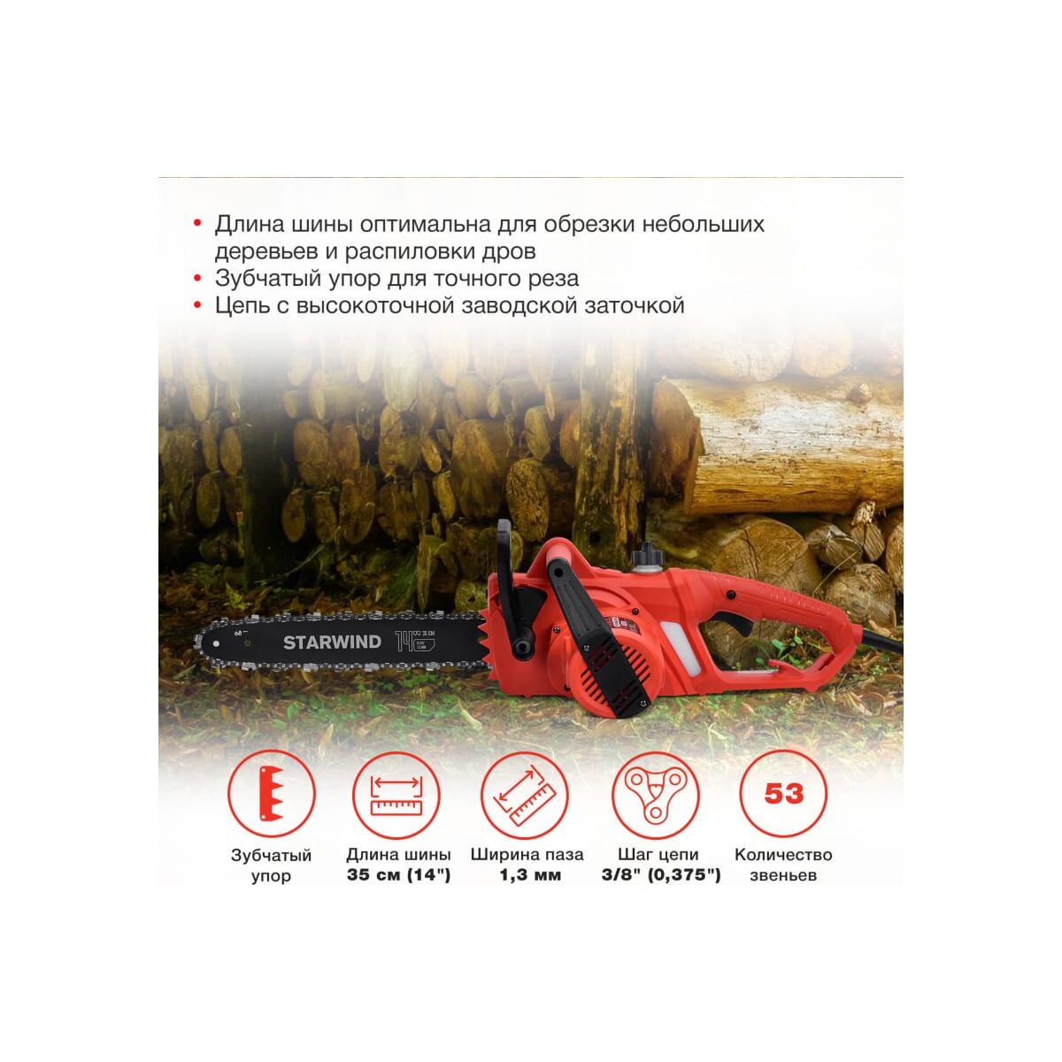 Электрическая цепная пила STARWIND SE-1814 1800 Вт длина шины 14 дюймов 35 см предназначена для распиливания древесины.